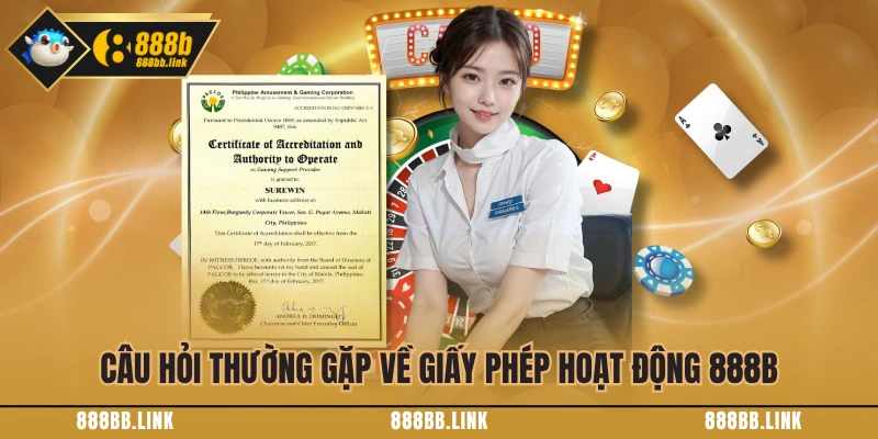 Hiện nay, nhà cái đang sở hữu 2 giấy phép hoạt động quốc tế đến từ tổ chức PAGCOR và Curacao eGaming. Thông tin về tất cả các chứng từ đều được công khai rõ ràng trên website của 888B và đơn vị cung cấp, thuận tiện cho việc tra cứu.